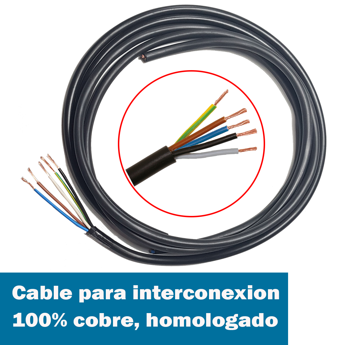 3,5 Metros de cable tipo taller de 5 x 1,5 mm.